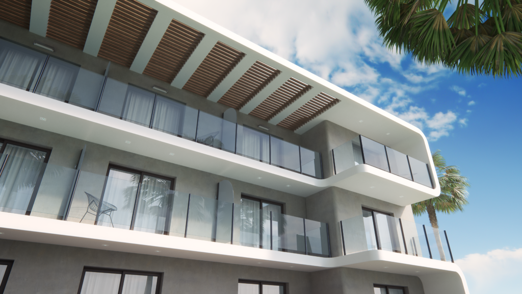 Kaasaegne ja elegantne piirdelahendus, mis rõhutab hoone arhitektuuri. Hooldusvabad alumiiniumprofiilid ja tugev turvaklaas tagavad pika kasutusea ning puhta ja ajatu välimuse.